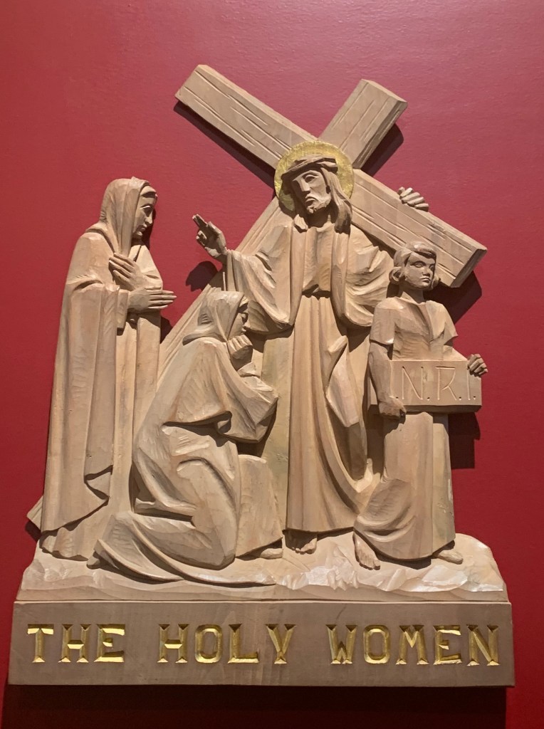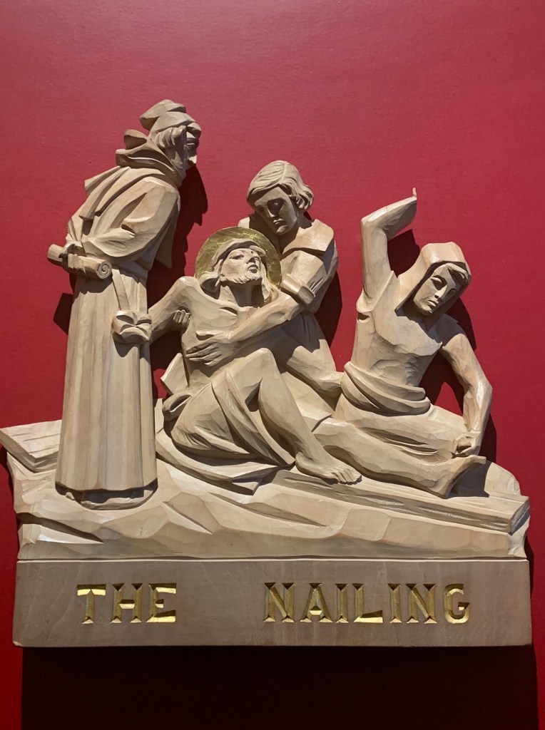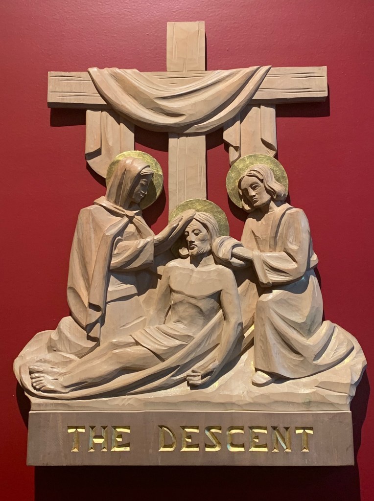 The 14 Stations of the Cross represent events from Jesus’ passion and death. At each station we use our senses and our imagination to reflect prayerfully upon Jesus’ suffering, Death, and Resurrection.