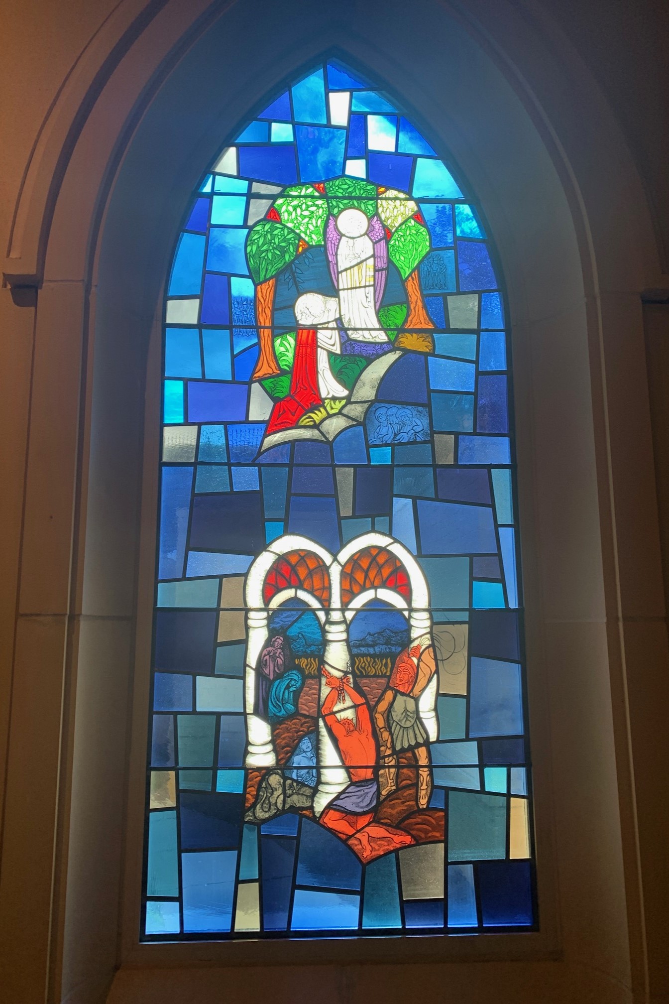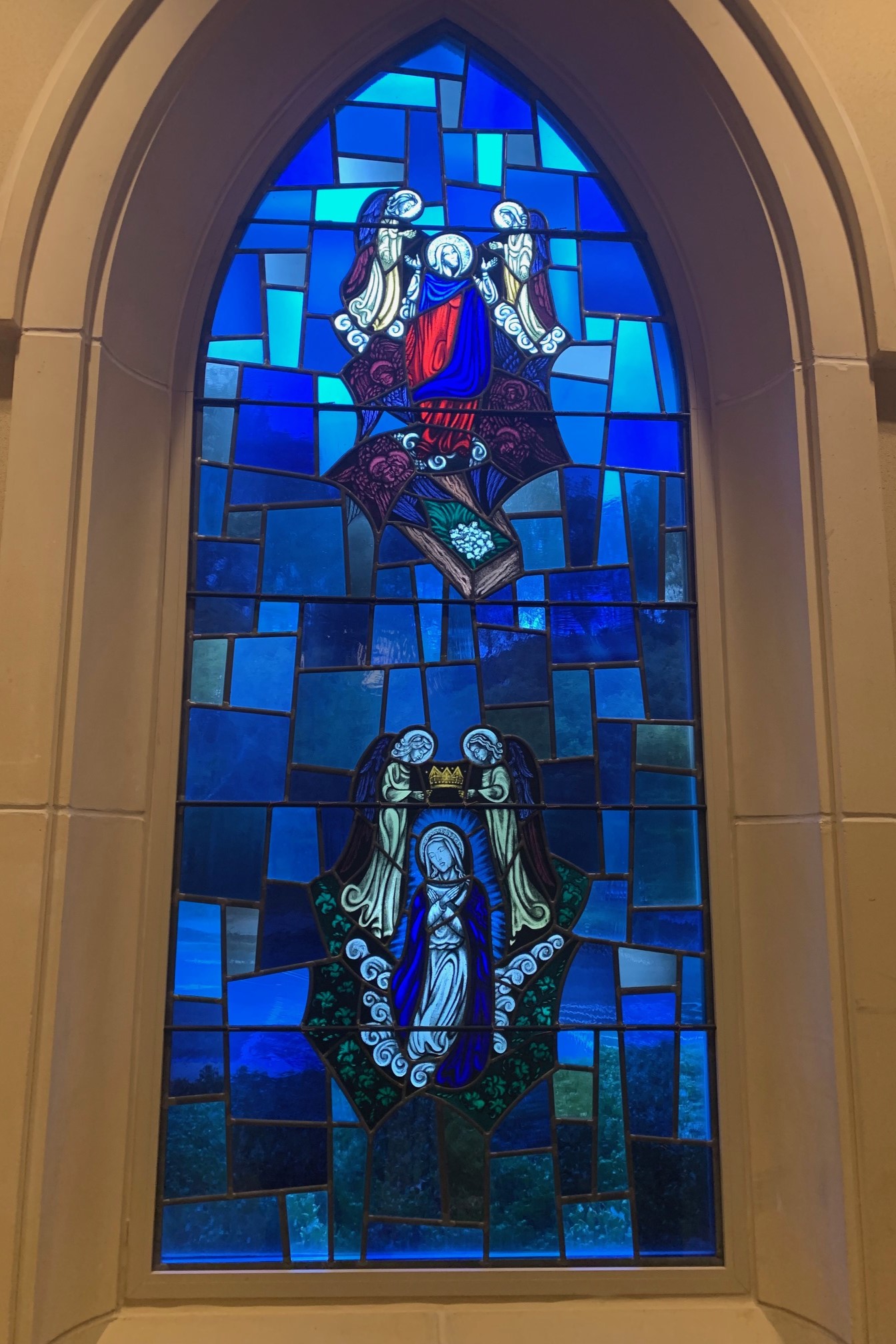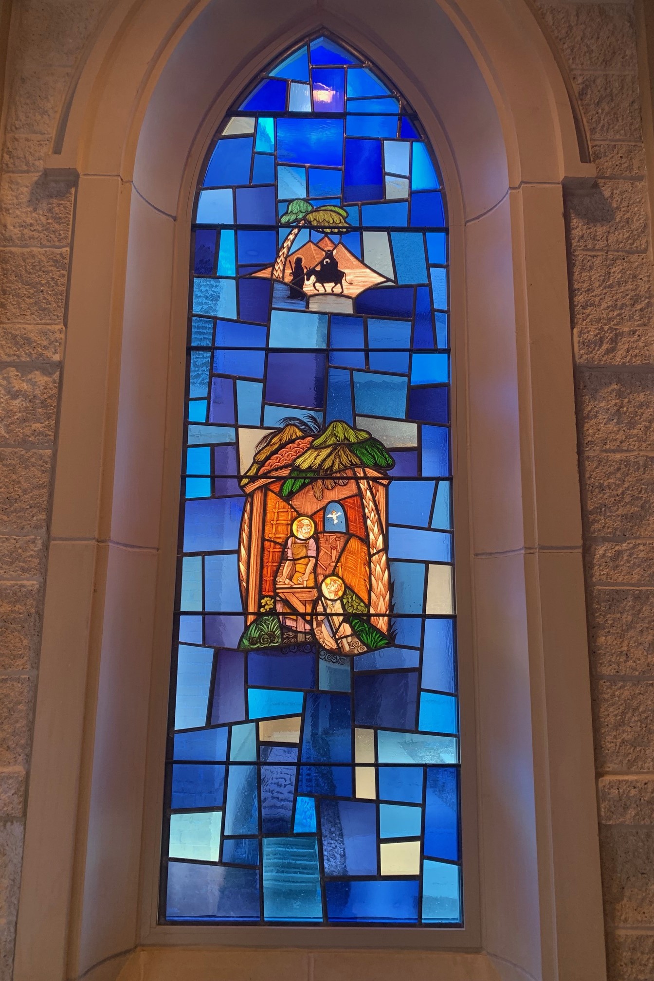 Cuộc đời, sinh hoạt của Đức Mẹ và Chúa Giêsu qua tranh kiếng nhà thờ.